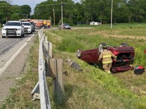 On Saturday around 6 pm, crews responded to a single vehicle accident on Old US Highway 50 near 150 West.