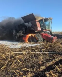 Emergency crews responded to a combine fire Wednesday evening near County Roads 325 North and 350 West in Washington. According to dispatch reports, firefighters were called to the scene around 5:05 p.m. after a combine caught fire while working in a field. Everyone was able to exit the equipment safely before it became fully engulfed. The flames spread into nearby standing corn, prompting additional manpower and tankers to be called in for support. Fire departments from Plainville and Washington Township assisted in containing the blaze. Crews remained on scene for about an hour to fully extinguish the fire. No injuries were reported.