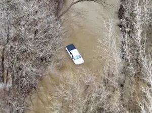 Two people were rescued from floodwaters in Pike County after attempting to drive through a flooded roadway. According to Indiana Conservation Officers, the incident was reported around 12:25 p.m. when dispatch received a call from individuals whose vehicle had become stranded, with water rising to the door handles. The occupants were able to climb onto the top of the truck in freezing conditions while awaiting help. A drone deployed by the Pike County Sheriff’s Department located the victims along River Road near Dodge City. Conservation officers then reached the vehicle by boat and safely transported both individuals to shore. They were treated and released at the scene. Officials are reminding the public to avoid driving through floodwaters and to follow the message: “Turn Around, Don’t Drown.”
